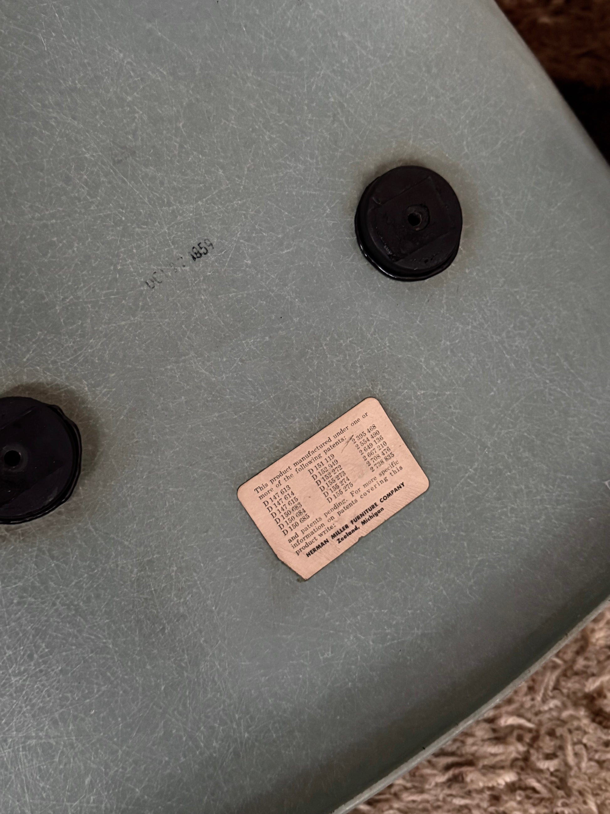 Rare and collectible DAX (Dining Armchair H-base) seafoam fiberglass armchair by Charles & Ray Eames for Herman Miller. Made in Zeeland, Michigan, 1950’s. Original label still affixed. In excellent vintage condition with wear consistent with age and use.