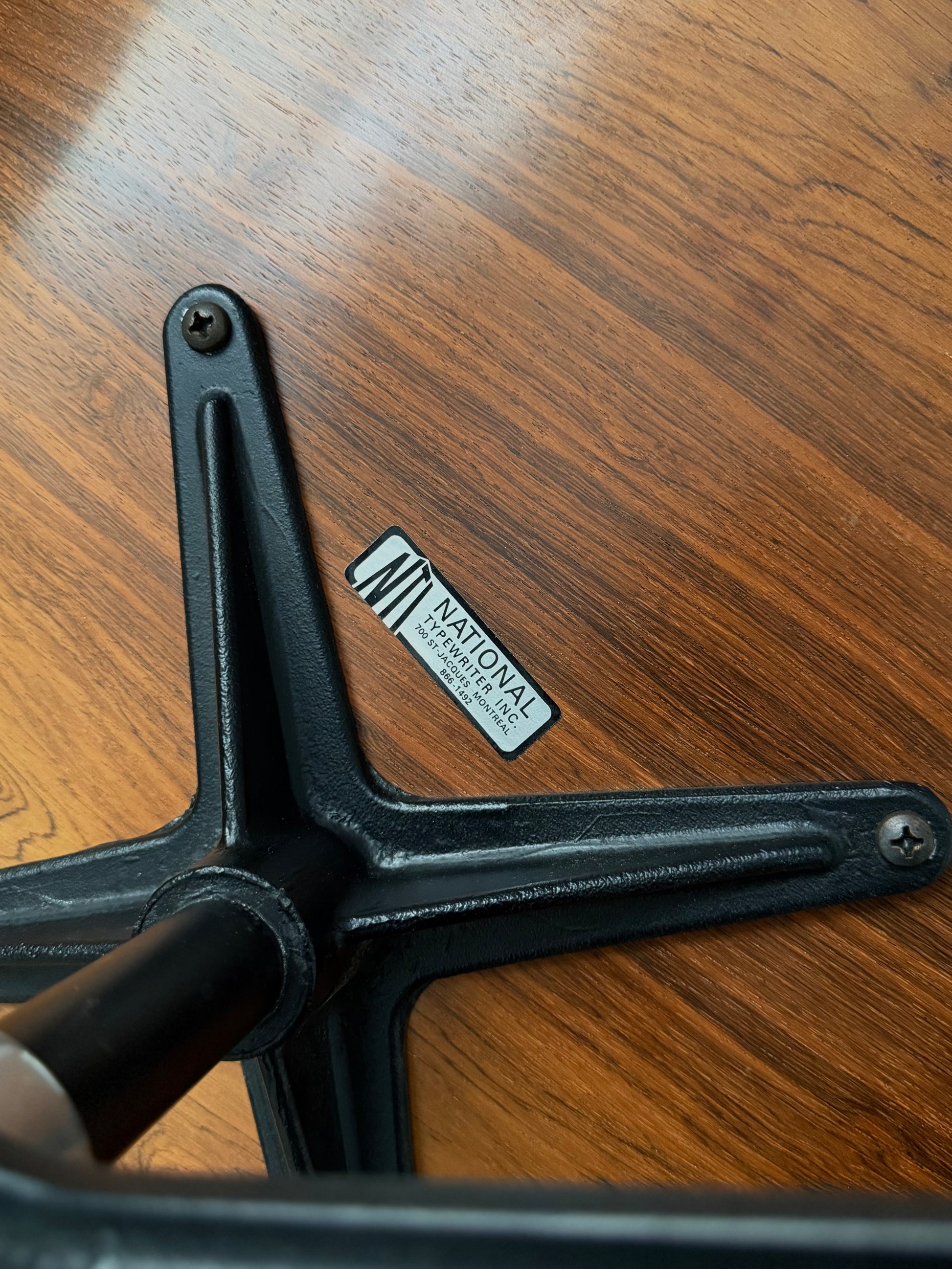 For some reason this particular chair does not retain a single Herman Miller label, they were removed by the retailer in 1960 and replaced with their store’s labels (NationalTypewriters Inc.) making the provenance even more uncommon. All wood screws used on the chair are Robertson screws, indicating the chair was shipped in parts and was partially assembled by the same retailer.