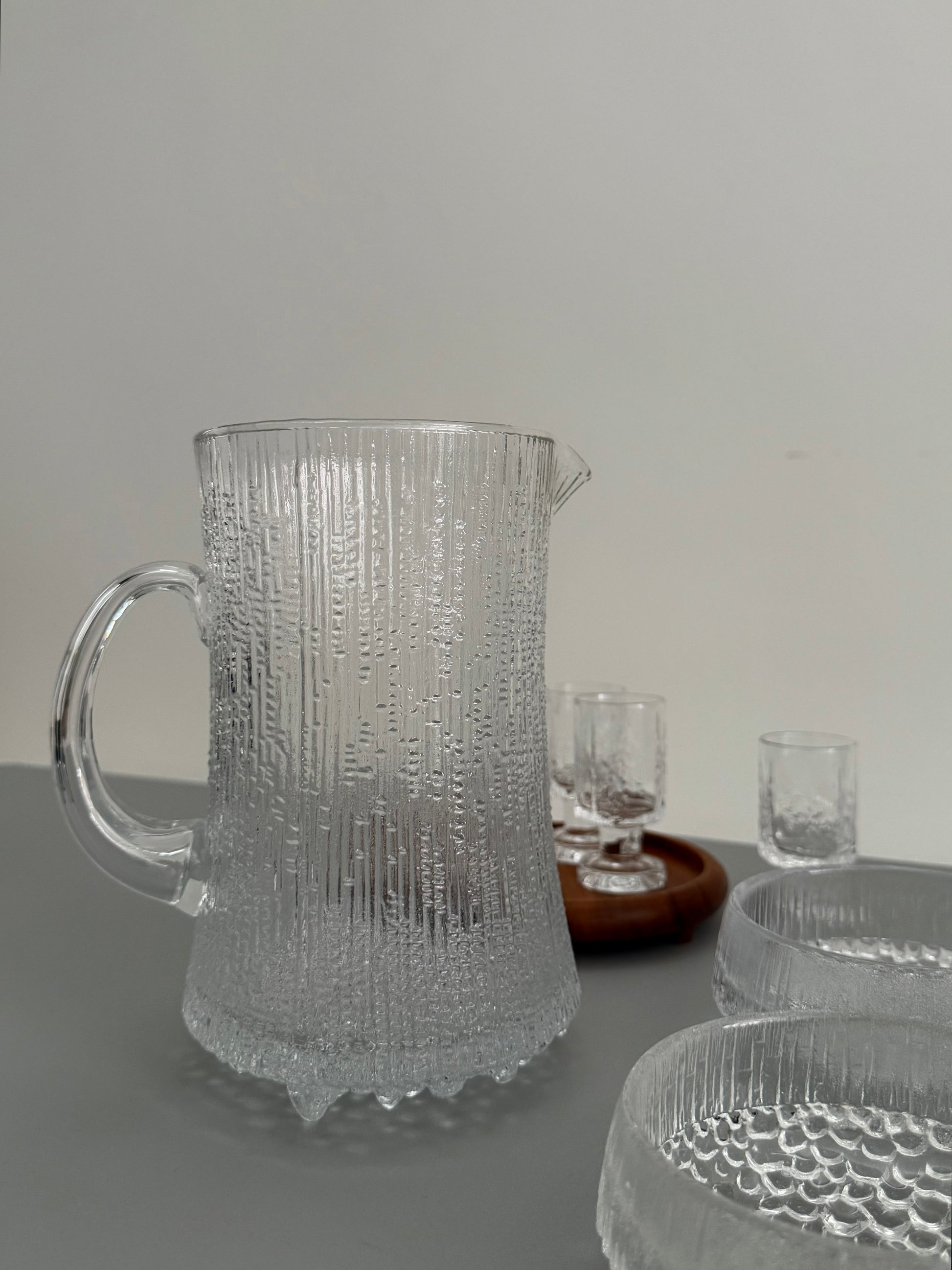 Large crystal pitcher by Tapio Wirkkala for Iittala, part of the Ultima Thule collection. Handmade in Finland, 1960’s-70’s.