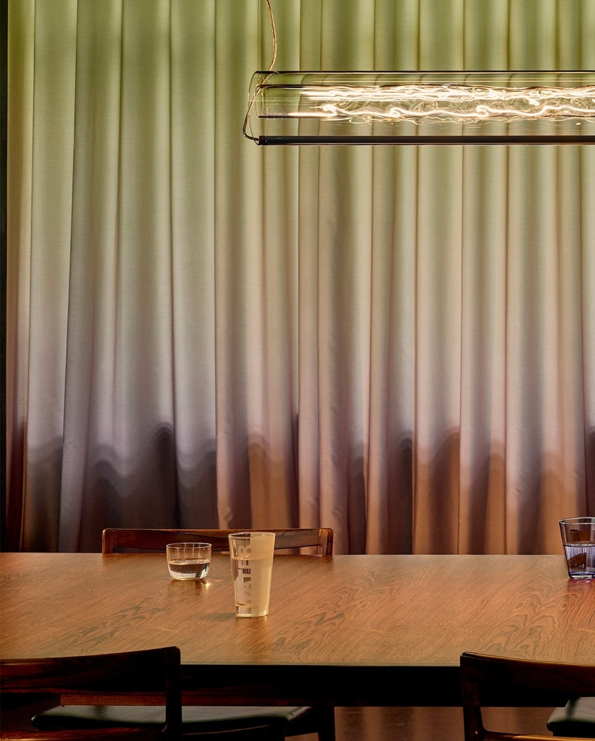 The outer linearly shaped glass tube houses the light source, which is fixed by magnets and offers both upward-facing uplight and downward-facing downlight. Both light sources are independently dimmable, allowing for the creation of individual lighting moods. Nalum is particularly suited for elongated tables, such as dining or conference tables, as well as for representative spaces where targeted and atmospheric lighting is required.